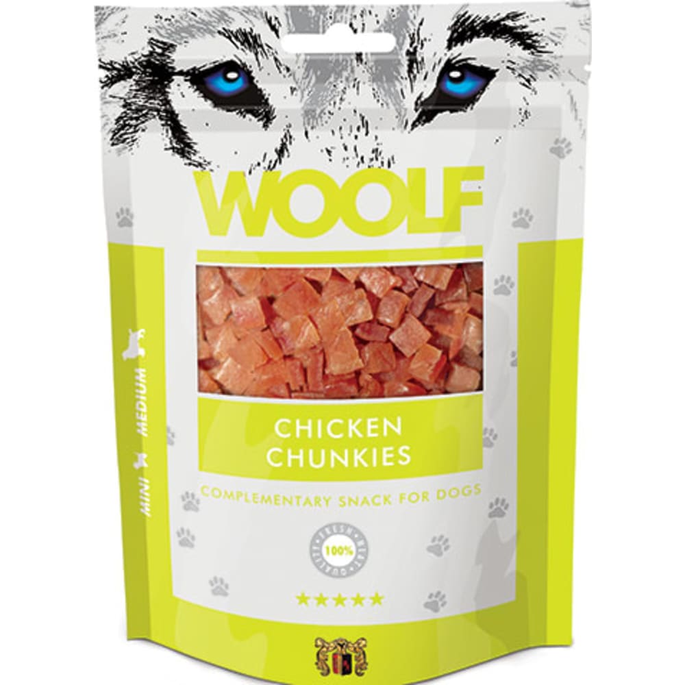 Woolf Chicken Chunkies er uden kunstige tilsætningsstoffer, konserveringsstoffer eller farvestoffer.